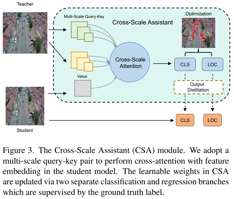 - Cross-scale assistant를 통해, student에게 부정적인 결과를 초래하는 noisy하고 uninformative한 bounding box prediction을 refine함.