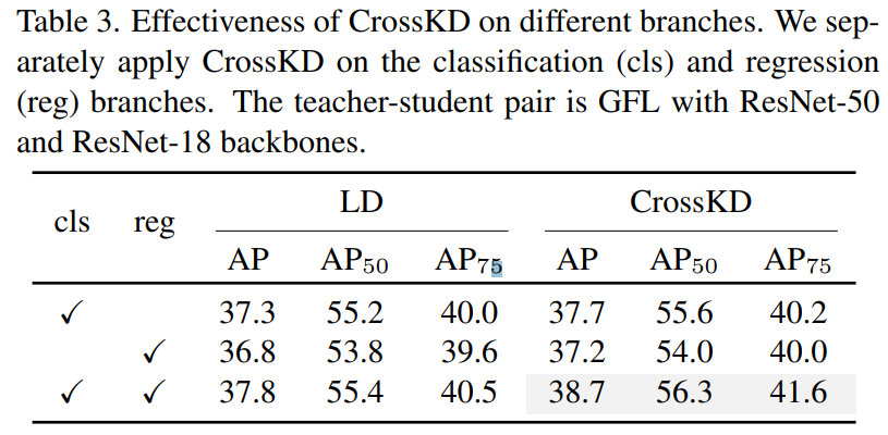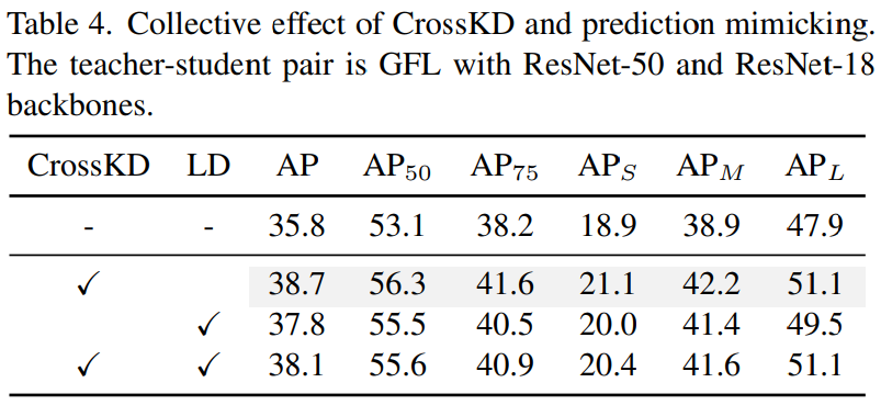 - $(+)$ cross-head prediction는 teacher detection head와 공유되기 때문에 teacher prediction과 상대적으로 일치함. 즉, discrepancy를 완화할 수 있음.