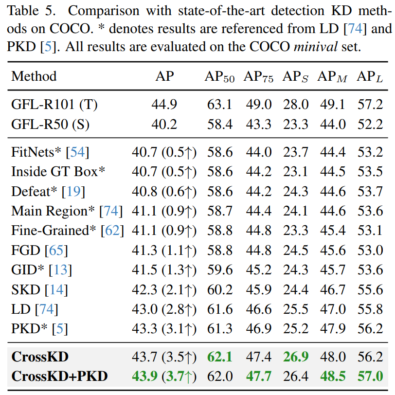 - 이를 통해, CrossKD는 student의 일부 detection head가 detection loss과만 관련되도록 해서 ground-truth target에 대한 optimization을 개선시킴.