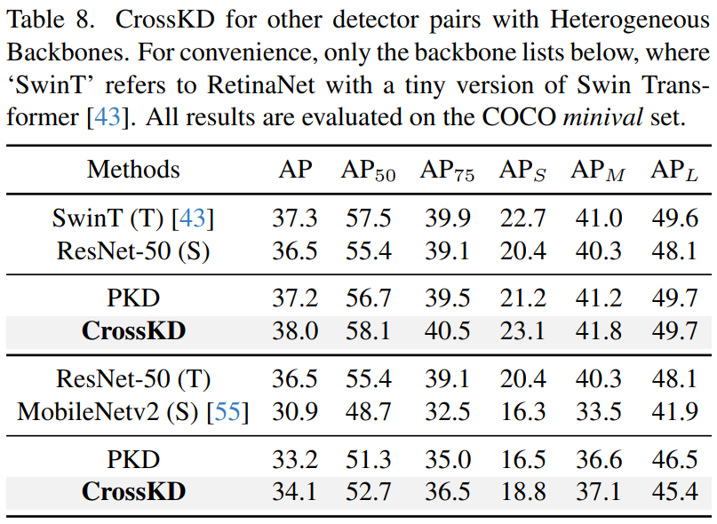 CrossKD on Different Detectors