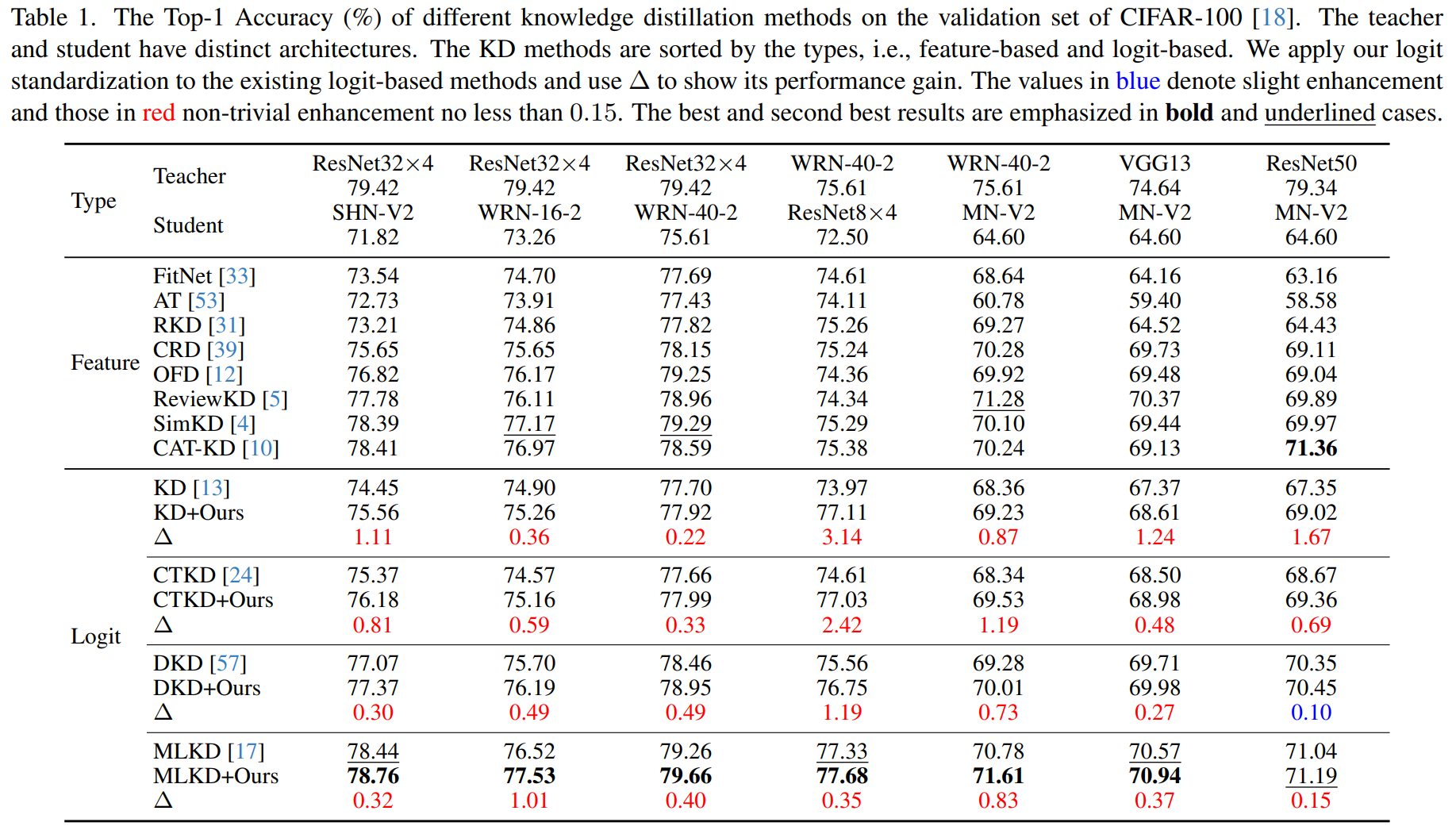 - $\mathcal{Z}$ pre-processing를 통해 logit의 arbitrary range를 bounded range로 mapping 하여 student logit이 teacher logit의 innate relationship을 보존하고 학습하도록 함.