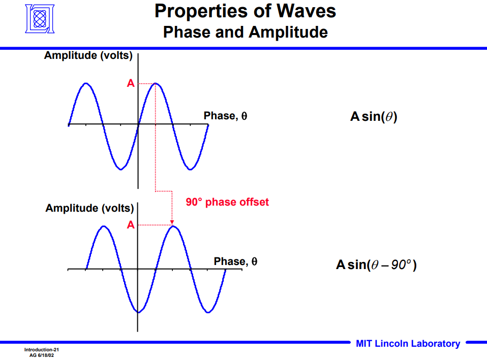 - 위의 예시는 90 degree만큼 offset 되어 있는 두 개의 wave를 나타내며, 이를 90 degree phase offset이라고 함.