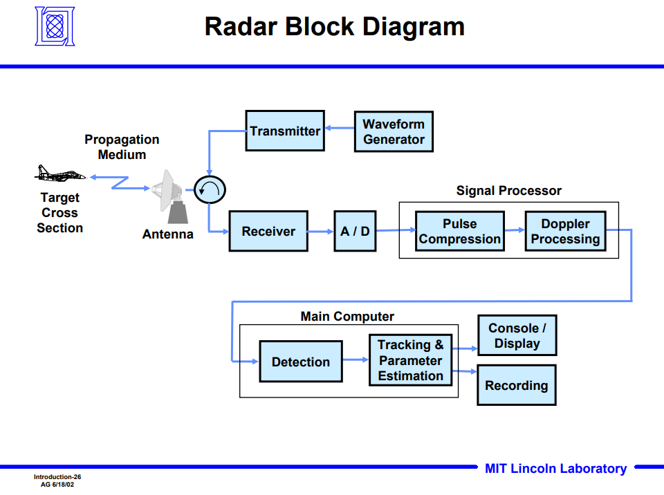 - Radar 시스템은 하나의 단일 시스템이 아니라, 여러 개의 하위 시스템으로 구성되어 있음. Block으로 표현되는 각 하위 시스템은 특정 기능을 수행함.