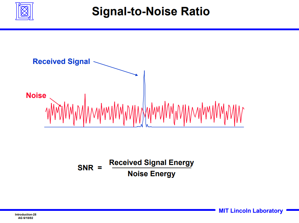 - 목표물 탐지 능력을 측정하기 위해서 Received Signal Energy와 Noise Energy의 비율을 사용함.