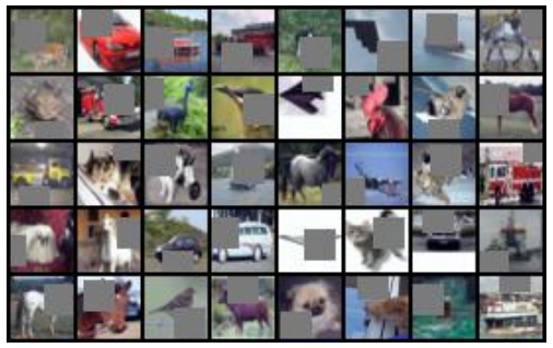 - Cutout: 이미지 내 일부 영역을 무작위로 제거하고, 그 부분을 0 또는 255 같은 일정한 값으로 채우는 방법