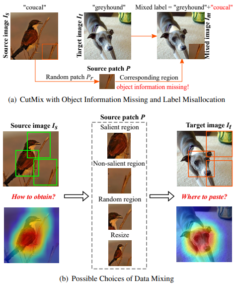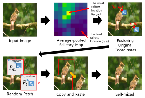 - SalfMix: 이미지 내에서 어떤 부분을 제거하고 어떤 부분을 복제해야 하는 지 결정하기 위해 이미지의 Salient 부분을 찾고, 가장 Slient 부분을 잘라내어 Non-Salient 부분에 옮기는 방식임.