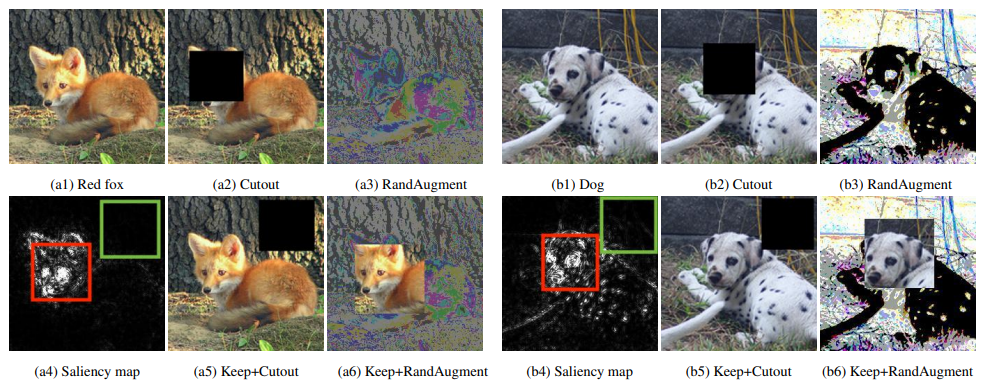 - KeepAugment: 모델의 성능을 저하시킬 수 있는 Distribution Shift를 방지하기 위해, 이미지지의 Salient Feature은 보전하고 Non-Salient 부분만 증강하는 방법임.