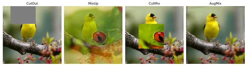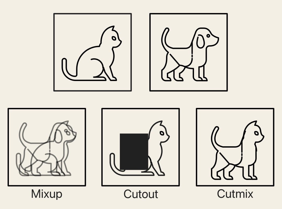- Mixup: 두 개의 이미지를 $\alpha$로 표현되는 Blending Factor에 따라 혼합하며, Label도 동일한 방식으로 혼합하는 방법