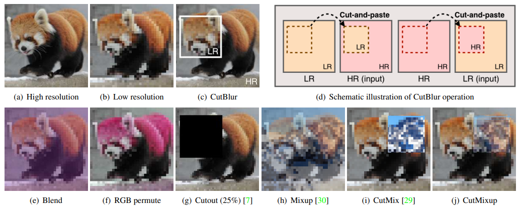 - Cutblur: Super-Resolution 데이터 증강을 위한 기법으로, High-Resolution 이미지의 일부 Patch를 잘라내어 Low-Resolution 이미지에 붙이거나, 반대로 LR Patch를 HR 이미지에 붙이는 방법임.