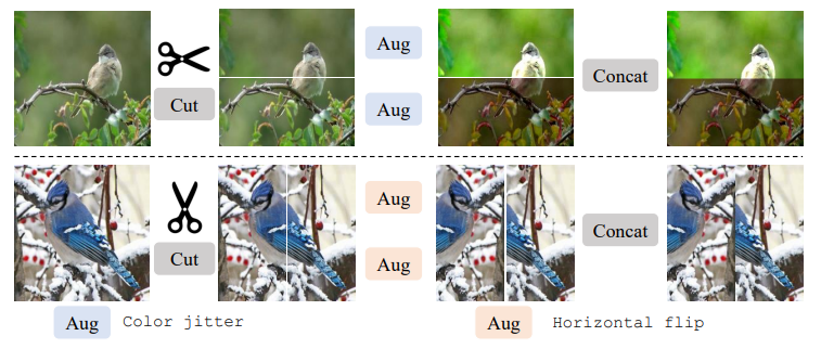 - You Only Cut Once: 이미지를 두개의 조각으로 분할하고, 각 조각에 개별적으로 데이터 증강을 적용한 뒤, 다시 결합하여 새로운 이미지를 생성하는 방법임. 추가적인 파라미터가 필요하지 않기 때문에 쉽게 적용할 수 있음.
