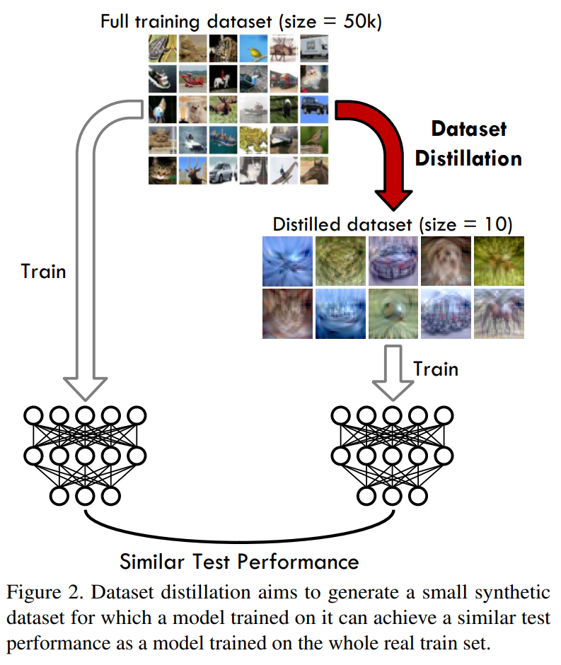 This is a Korean review of "Dataset Condensation with Distribution Matching" presented at WACV 2023. TL;DRDD를 통해 합성된 이미지로 모델을 빠르게 학습할 수 있지만, 이미지 생성 과정은 복잡한 bi-level optimization과 second-order derivatives computation 때문에 계산 비용이 매우 큼.본 논문은 many sampled embedding spaces에서 합성 이미지와 원본 이미지의 feature distribution을 일치시키는 방식으로 이미지를 합성하는, 최초의 distribution matching 기반 dataset distillation 방법을 제안함. Introduc..